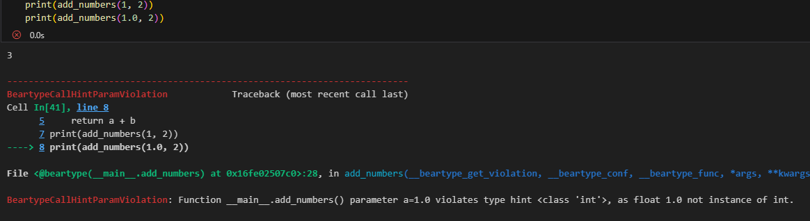 Comme on le voit, lorsque le type est violé, la fonction lève une erreur.